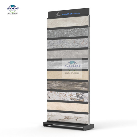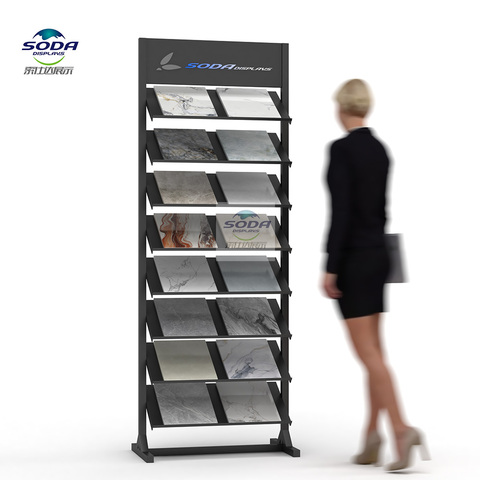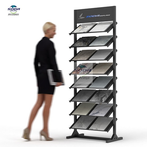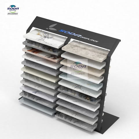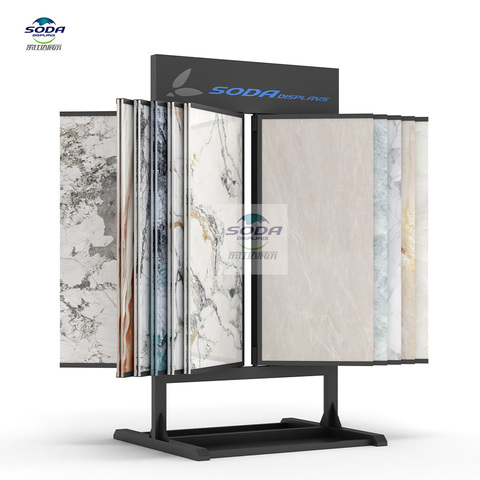 Personalizzabile doppia fila verticale in metallo espositore per piastrelle in pietra Display Rack in piastrelle negozio showroom