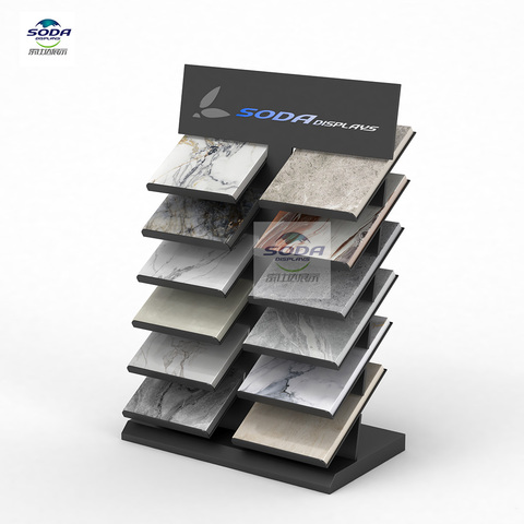 Espositore personalizzabile in metallo a gradini per piastrelle in pietra espositore Freestanding Tile Shop Showroom
