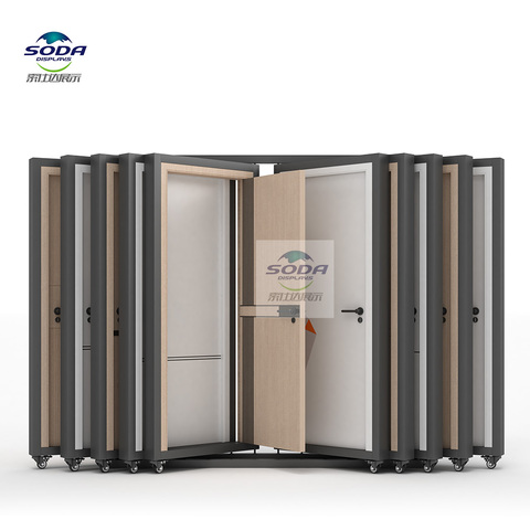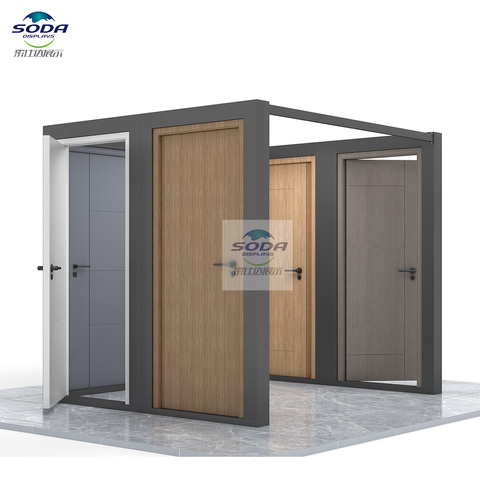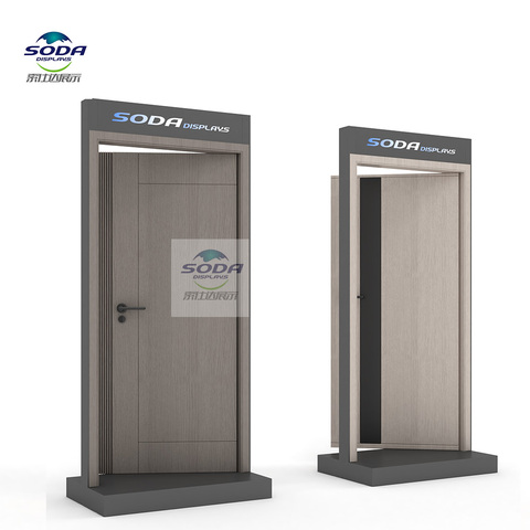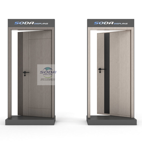 Tùy chỉnh chuyên nghiệp phong cách hiện đại mẫu phòng cửa gỗ hiển thị đứng cho vật liệu xây dựng cửa hàng showroom